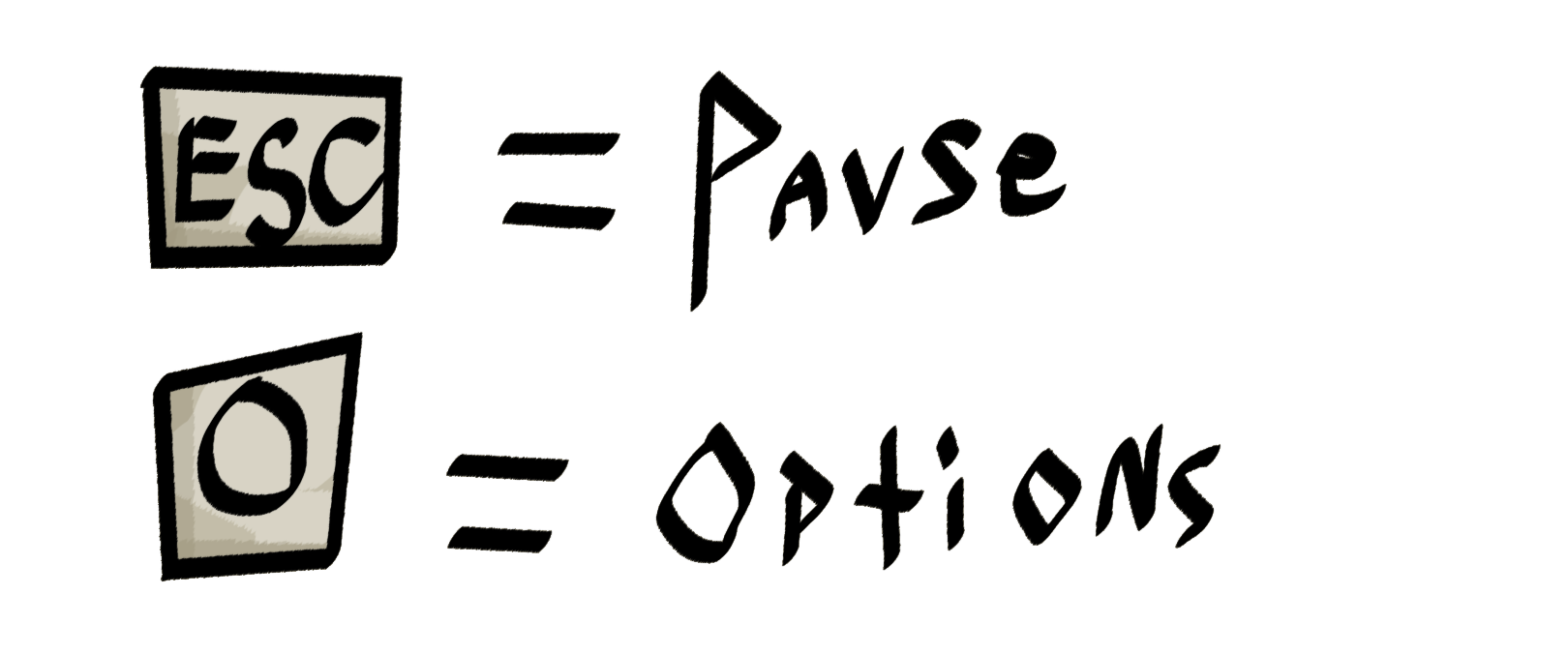 The camera and options menu are not set up yet. Camera is a maybe option, it might not make it to the finalized game. We'll see. it's not that important right now. you can access the options menu through the keyboard key "O" but it may not work as expected. The game needs further adjustments here.